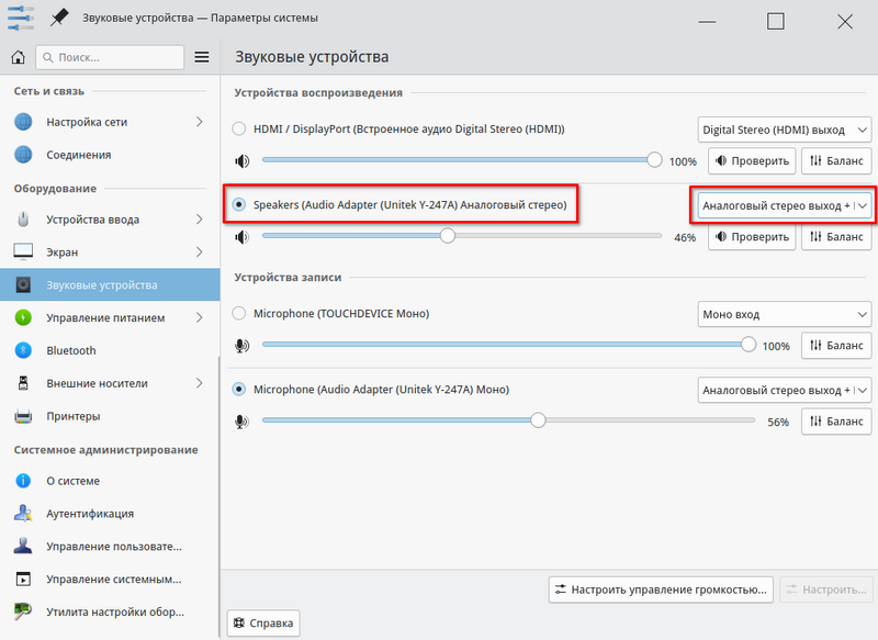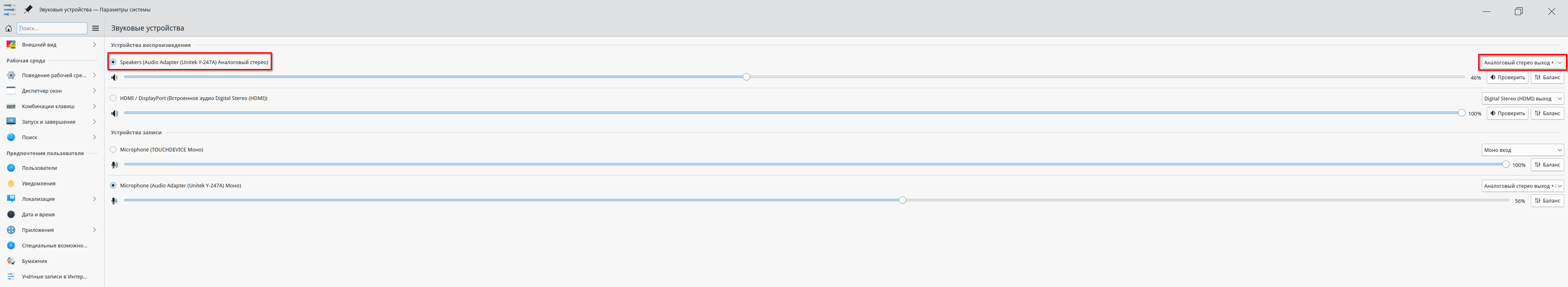 Выпадающий список "Аналоговый стерео"