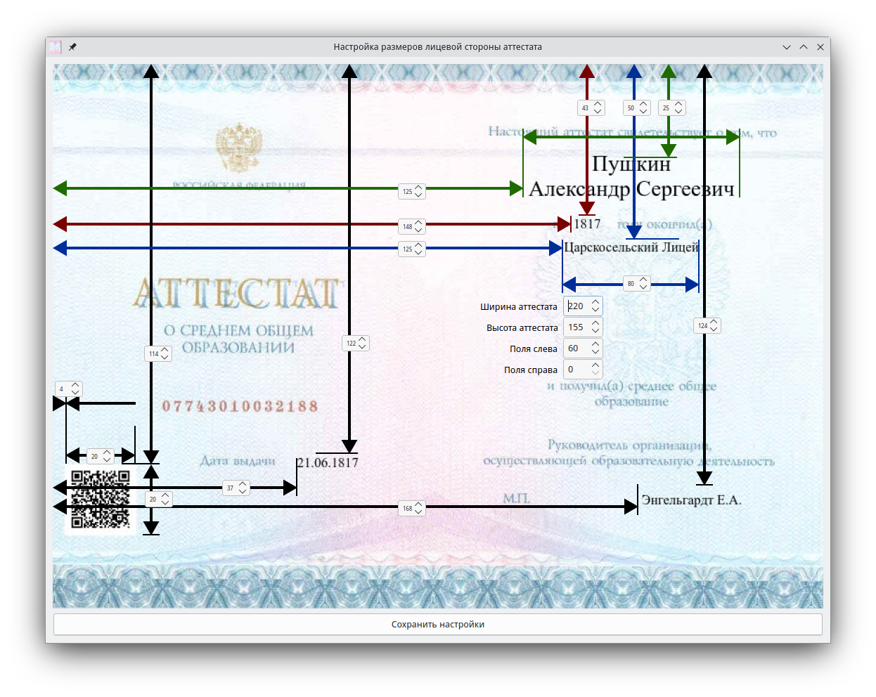 Окно настройки габаритов
