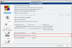 Можно настроить среду, чтобы работало в любом случае. Для этого откройте Settings - Environment и выставите там терминал в значение konsole -e.